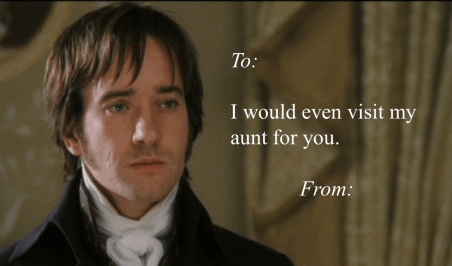 Knightly–from Jane Austen’s Emma is probably my favorite of Jane Austen’s male characters–he gives up so much for Emma! But when I saw this Mr. Darcy themed valentine below, I knew I had to share it with you!