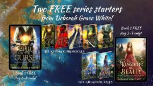 Deborah Grace White has two books available for free–Heir of the Curse (The Kyona Chronicles #1) which is a fantasy series with DRAGONS and Kingdom of Beauty (The Kingdom Tales #1) which is her series of awesome fairy tale retellings! But snag these fast! Kingdom of Beauty is only free through August 7th!!
