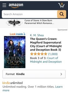 This screen grab is from the day we crossed this milestone–Queen’s Crown has already blazed on past and keeps getting more reviews. Magic Forged (Hall of Blood and Mercy #1) will catch up pretty soon, too, as it’s in the 900s for reviews as I write this.
