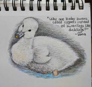 Tari by ElenielEleniel created two pieces that are a “first” in the gallery! The first is a fan art of Dima (one of the members of the Black Swan Smugglers in Swan Lake). The second is a fan art of Tari from Elves of Lessa (or Tarinthali as her full name is). While I really like the art for Tari as Eleniel captured elven elegance perfectly…Dima is just TOO CUTE!!! And the shading on his feathers and the coloring of his cute little eyes and bill? You just wanna cuddle him! (And his quote only makes it that much more fun!!)