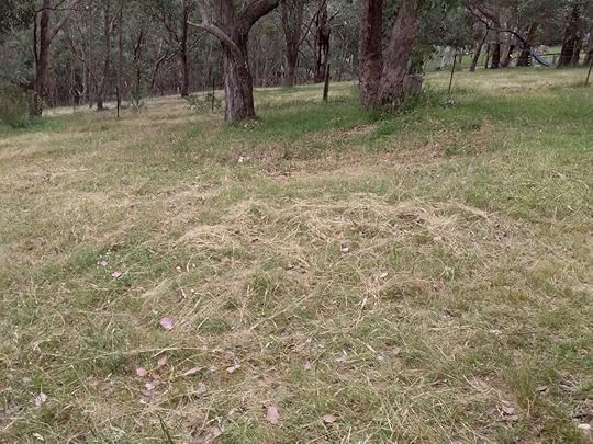 We don’t have to worry about floods here in Warrandyte as we’re on a ridge, but all that rain means the grass grows an inch over night. And it’s too wet to mow during the day, especially with a small, cordless lawnmower.