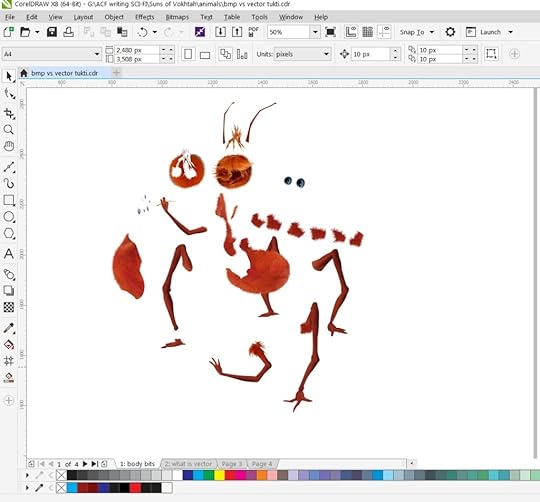 Creating something that looks ‘furry’ with vector graphics has been a lot harder than I originally thought. Read…I didn’t think. Anyway, I’m pleased with how the head and body finally turned out, and once I have the legs done, I’ll do a post showing a little bit of the process. As per usual, I create my digital collages with Corel Draw X8.