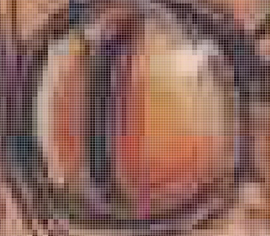 First up, you need to get an idea of the difference between bitmap images [derived from photographs] and vector images [derived from geometry]. The image below is part of the original concept drawing and shows the Tukti eye blown up so you can see the pixels: