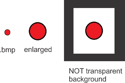 In the example shown below, the two images on the left look as if they have a transparent background, but that’s only because the page is the same colour as the background. When you place the bitmap on top of a darker coloured background, like the image on the right, it becomes obvious that the red circle sits inside a white background.