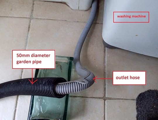 I’ll leave all the expletives deleted to your imaginations and plunge straight into the how-to. Firstly, my washing machine is a top loader and has an outlet hose that empties the water into my laundry trough. This means I can move the outlet hose wherever I want.