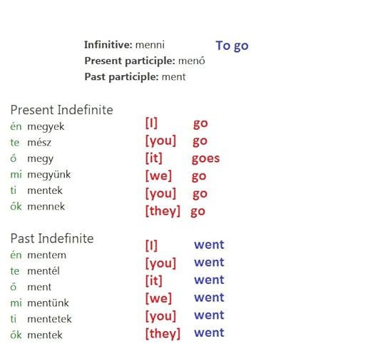 This is what the present and past tense of the verb ‘To Go’ looks like in Hungarian: