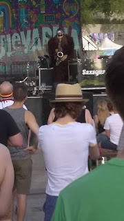 So, armed with shorts, a hat, water bottles, sun screen and other life essentials (we looked like Hawaiian be-shirted campers), we headed for day one of Boulevardia. Day one wasn't bad. It started at 5:00 p.m., so most of the blistering sun had fallen and there was a nice breeze. But by the end of the night, when headliner Nathaniel Rateliff and the Night Sweats (one of the main reasons for our attendance) took the main stage, we found ourselves in the middle of a huge, jam-packed mob situation. Hundreds and hundreds and thousands and hundreds of fans were squished together like sardines in a can.