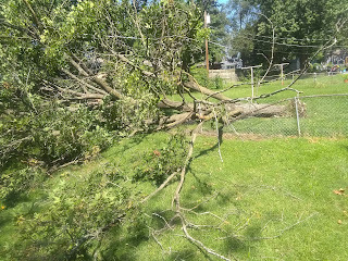 So, the neighbors were really cool about it and everything. They got right on it. The very next morning, a dozen mercenary, crazy-ass, chainsaw-wielding acrobats were on the case, juggling live chainsaws and taking risks that would've sent Evel Knievel into a thumb-sucking, fetal position. Cleared up in about two hours.