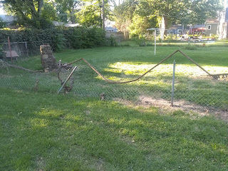 The problem was the fence. And it still sits busted up like a drunken giant had taken a face-plant and jacked up his dental work.