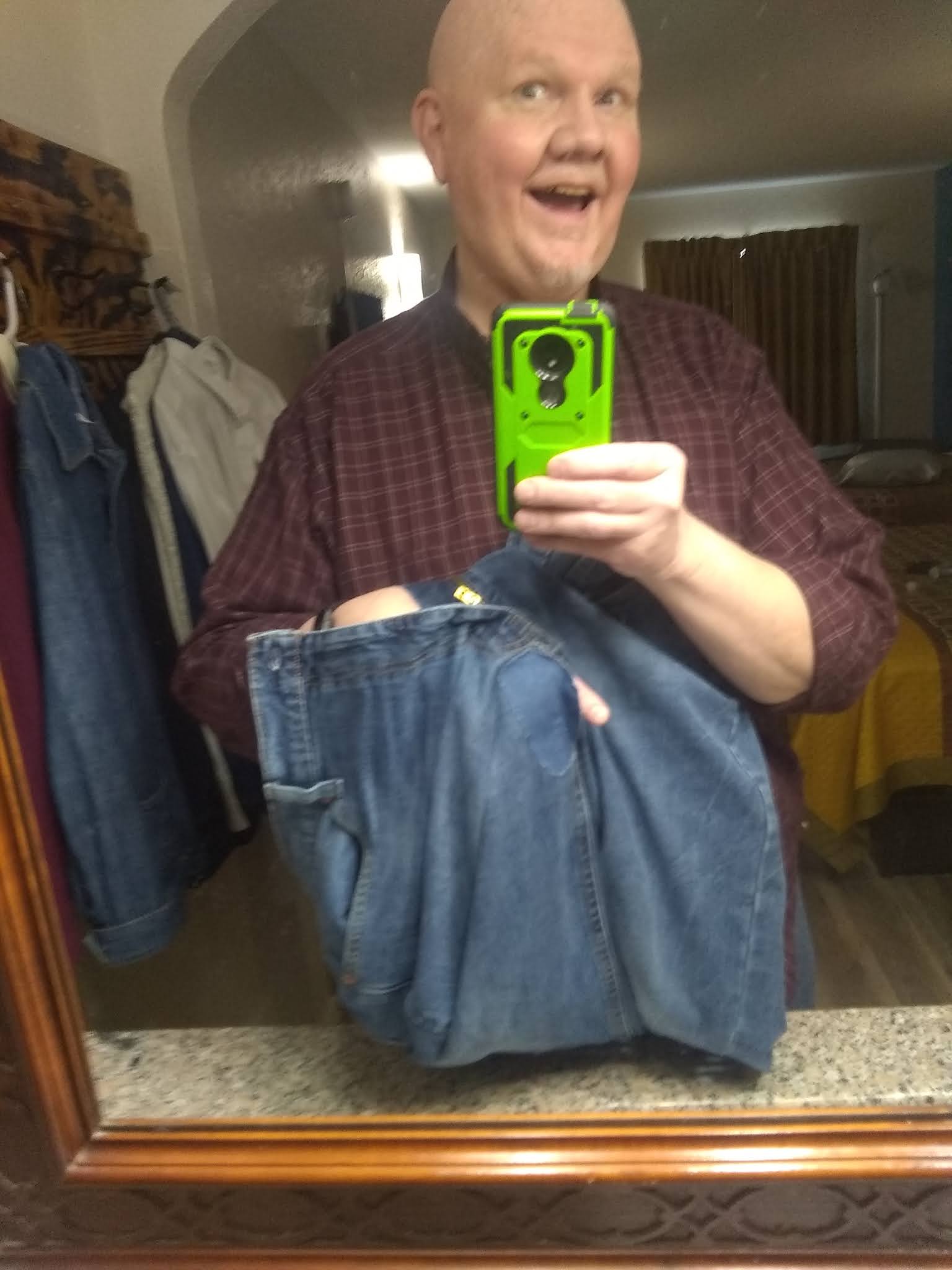 Quietly, I called my wife over. She responds with a laugh, and says, "We need to go get you some new jeans. Now."