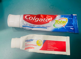 I should count myself lucky, I suppose, as I only had one truly tragic camping mishap. Half asleep one morning, I reached for a tube of toothpaste on the bathroom countertop, squeezed some out, and brushed my teeth. Thinking it tasted..."funny"...I checked the tube. I'd grabbed my bro-in-law's hydrocortisone. More shrieking ensued. Camping.