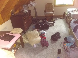 The wildlife wasn't content to stay outdoors either. One look at the room my wife and I shared with our nephews shows the obvious proof that a wild, enraged beast of some sort (maybe a castrated Bigfoot?) went on a rampage strewing clothing and other items everywhere! Camping!
