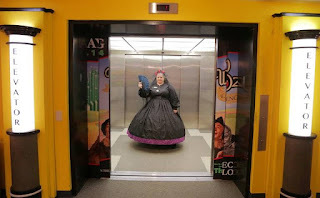 Most troubling of all, of course, is the breakdown of Our Blessed Lady of the Elevators. The super-cool, mechanized elevator used to welcome you aboard with a very pleasant greeting delivered by one of the great female, comforting voices I've ever heard. It's like being under a gravity blanket and I never want to leave her bowels. She might even have a slight British accent, I'm not sure. (As everyone knows, Americans just love British accents, hence why they find BBC stuff like "The Button Hour--A History of Buttons" fascinating. If that were an American show, narrated by, say, Gilbert Gottfried, all bets would be off. But I digress...)