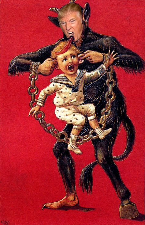 Well, for your reading pleasure (or nightmares), I've uncovered a true Krampus residing in the United States! And not only does he operate year round, he tortures predominantly good children, kissing them into dreadful nightmares! Ladies and gentlemen, I give you...Trumpus.