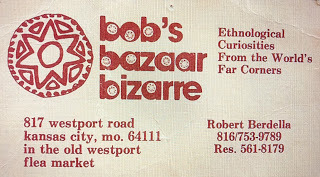 Speaking of Westport, Bob ran a booth down there called "Bob's Bizarre Bazaar." The little shop specialized in selling odd items from around the world. Now, the booth was inside another building called "The Westport Flea Market," a very unusual joint comprised of dozens of booths lining three walls and a hamburger restaurant (that had crab races on Sunday nights!) in the center. I spent many an afternoon and night in that joint while Bob undoubtedly watched me gnawing on a burger. (The place still prides itself as "the best burger in KC," but the Berdella fallout wasn't the greatest publicity for meat-eaters, as you can imagine.)