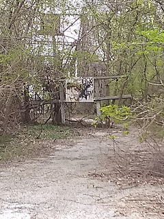 We followed a strange, wooded and harrowing gravel road to nowhere ending in a locked gate with an ominous large black "X" painted across the faded sign.