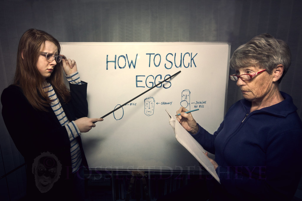 Finally, yes, I did break down and look the phrase up. It means don't tell someone how to do something they have more knowledge about. Huh. So...all grandmothers are expert egg-suckers is the take-away from this lesson in semantics. Now I'm seeing vivid imagery of a line of lil' ol' ladies sucking on their eggs. I'm scarred for life.