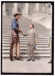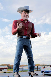 Out of nowhere, a seven foot-tall cowboy with an even taller cowboy hat, wearing an immaculately pressed long-sleeve cowboy shirt, gets in my face.