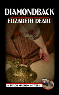 ED: We had a lovely ferret named Abby for almost 10 years. We adored her. The males do have pretty powerful stink glands (though nothing as bad as a skunk). The females do, too, but if you bathe them, the odor is almost imperceptible. They are delightful! Into everything, crawling through the smallest spaces you can imagine. They're like magpies, in that if a bright or interesting object catches their attention, they'll do their best to take off with it. After Abby died (still breaks my heart) we found her little caches all over the house. Lengths of string, rubber bands, pieces of my jewelry, bottle caps, etc. The scene in Diamondback where a woman is up on the couch trying to get away from Hazel (because she "saw" a rat, not a ferret) comes from real life. I won't name him, but a friend of my husband, a fellow deputy, dropped by to visit us one evening when Abby was loose. We had honestly forgotten she was out and about until she came up through the couch cushion behind him. Well . . . he never came back without calling ahead first.