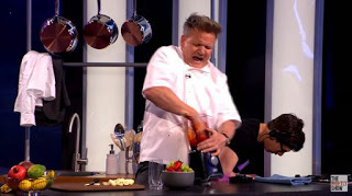 As per our agreed upon division of labor, I found myself in the kitchen the other night preparing a turkey-loaf for my lovely wife. My own kitchen-sink recipe, the ingredients called for a pound of turkey, an egg, various spices (whatever I can find; the loaf's never the same twice), catsup (and am I alone in thinking that "catsup" should be spelled the way it's pronounced? I mean, come on!), Worcestershire sauce, blue cheese crumbles, chopped vegetables, and a sliced thumb tip.