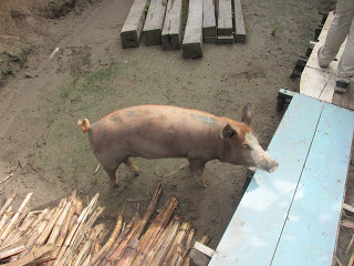 Our shaman then dumped the resultant sugar into a fermenting barrel. Once he set the bowl back on the ground, a friendly pig lapped up the rest (I still don't know if he was a family pet or breakfast). Hey, alcohol kills germs! Apparently the pig had too much to drink and then sat on my wife's feet.