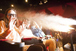 "Warning," a solemn voice admonishes, "if you're pregnant, sick, old, or near death; if you have a bad back, neck, or any open sores; if you haven't been to the restroom in over an hour; if you're prone to fainting, psychadelically freaking out, or screaming at vicious strobe lights; if you're the litigious sort, than the MX4D experience is not for you. We'd advise you to leave right now and the theatre staff will try not to shame you. Now, sit back and enjoy the magic of the movies."