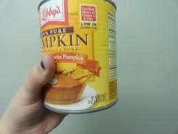 "Yes!" She vacantly stares at me like I'm the crazy one. "Pumpkin in a can!" Very irritable, she can't believe how pumpkin dumb ("dumbkin?") I am.