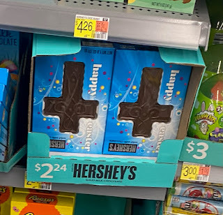 I truly wish I could be a fly on the wall when the holier-than-thou patrons (and employees) discover my buddy's annual holiday tribute to sacrilege. I wonder if the poor beleaguered manager is assailed by an angry mob who vows never to shop at his Walmart again. Or if they picket the store (because everyone knows that Walmart is EVIL anyway). I lay awake at night, chuckling, just imagining the various scenarios when the blasphemous chocolate display is discovered. Might they go as far as to bring out an Easter cam next year?