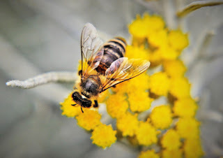 Proud of my chutzpah, I trimmed around the garden in front. Suddenly, my thigh was on fire. Huh, I thought, that's odd. I scratched like mad, tamped my thigh many times just in case somehow a spark from the trimmer had crawled up my shorts. That's when I noticed the ground cover hazy like heat off hot tarmac. I'd stumbled into a horror movie's worth of bees swarming around me.