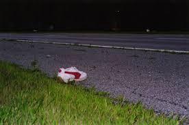 But it's the shoes that baffle me. Never a pair, always one. Usually a tennis shoe.