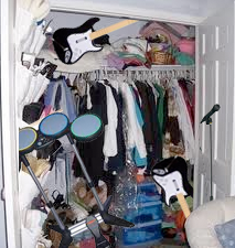 I didn't think relinquishing closet space would be so bad. I mean, years ago I'd already sacrificed my totally awesome bachelor furniture to the dumpster gods: a cardboard, life-size beer girl; a leaking bean bag; an inviting sofa with my butt-prints fossilized upon one end. And, granted, I never did use much of the closet space to begin with. But...but...