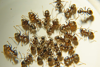 I started wondering about the ant who brings back the poison to his queen. He'll watch as the queen takes a bite, expecting a cookie. Instead, she'll gag, look at the carrier, say, "Et tu, Brute?" The rest of the crowd will die, pointing judgmental ant limbs toward the poor lil' guy. And all the while, he's probably all "What?"