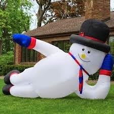 One of my neighbors still--STILL--had a stupid inflatable snowman bobbing in his yard well into January. Nothing brings out the Christmas fuzzies like a glorified balloon. It ain't a car-lot, for crying out loud. You know the worst offenders are the guys who stick up huge blow-up Kansas City Chiefs inflatables in their yards during Christmas. Somewhere along the way, the inflatable industry has corrupted Christmas.