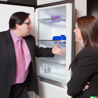I went back to the love-seat, while she was still banging away in the kitchen. Soon enough, she's in the refrigerator and hollering about all the food that's gone to waste.