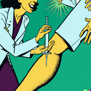 "Bring it!" Of course I'm no fan of shots, but anything to alleviate my suffering.