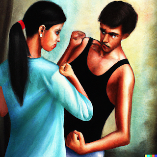 So. We've got a wiry, strong Indian man versus a sultry British Brunette woman. Who'd win in a knock-down, throw-down, duel to the death?