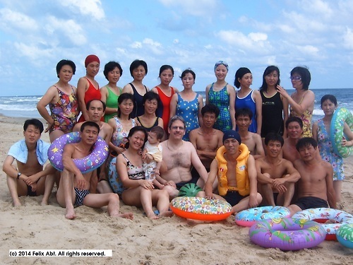 Nevertheless, Felix Abt dedicates this photo to The Wall Street Journal and The Guardian. It shows himself, his wife and daughter and his North Korean staff at the beach of Wonsan, where, ‘hold the front page’, they are having a fun day out. For those among their readers who want to know more about the unspectacular, normal (for lack of a better word) North Korea, read his book A Capitalist in North Korea: My Seven Years in the Hermit Kingdom