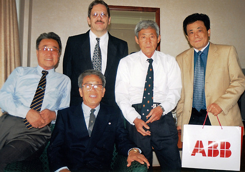 The picture shows Felix Abt, resident country director, North Korea, of the multinational engineering group ABB, together with Pak Doo Ik (sitting in the middle), who is still hugely popular in North Korea, and other members of his soccer team. ABB was one of the sponsors of a documentary film by Dan Gordon and Nicholas Bonner on this historic sport event.