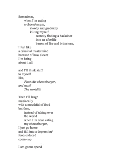 My prose piece girls with griffins in their eyes need to wear contacts was published in Vending Machine Press today. You can check it out HERE if you have nothing better to do and/or if you’re done masturbating for the day.