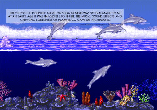 The Ecco the Dolphin game on SEGA Genesis was so traumatic to me at an early age it was impossible to finish. The music, sound effects and crippling loneliness of poor Ecco gave me nightmares.