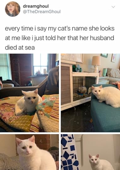 Wait is this the same cat from that “my cat always looks like she just found out her husband died at sea” tweet??