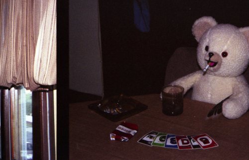 My dad gave me a USB drive with hundreds of pictures he has taken since the 70′s. This picture of the Snuggle bear playing UNO is undoubtedly the best picture he has ever taken.
