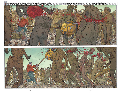 i saw folks complaining about this and i’m just like, folks, it’s geof darrow drawing page after page of shaolin cowboy chopping the crap out of a legion of zombies what is wrong with you