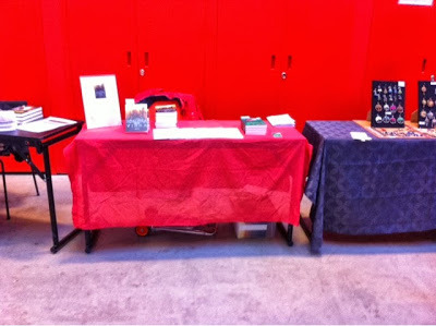 Just nu är det rätt lugnt, eftersom det är panel. Bilden ovanför är tagen just när jag plockat i ordning och innan folk dök upp. Så fort det är paus strömmar folket till och då finns det ingen stund att blogga... :-)