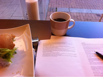Sitter på café och korrekturläser Det är inte så lätt som du tror... :-)Det är bara en sista korrekturläsning innan manuset är klart för sättning. Omslaget är klart så det blir inget problem...Jag hoppas på att jag ska kunna släppa boken i tid innan jul, men för provtryck och tryck och frakt så måste jag nästan räkna med en och en halv månad så det är inte alls säkert. Håll tummarna! :-)Det är många som frågar efter boken, eftersom de läst Kedjor känns bara när du rör dig och vill veta hur det går då det känns verkligen bra att det börjar närma sig... :-)Har du läst Kedjor känns bara när du rör dig? Längtar du isåfall också efter fortsättningen?