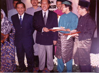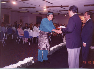 Bersama Awang Abdullah menerima hadiah daripada Tun Ahmad Sarji, Pengerusi Permodalan Nasional Berhad (PNB) dan Tan Sri Hamad Kamapiah