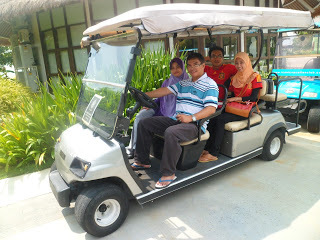 Dari tempat letak kereta, penulis dan keluarga dijemput oleh kakitangan Sepang Gold Coast dengan buggy dan dihantar sehingga ke bilik penginapan. Jika sebagai pelawat biasa anda tidak mungkin dapat naik buggy ini apa lagi untuk meronda sekitar kawasan Sepang Gold Coast. Ini kerana kawasan Sepang Gold Coast agak eksklusif dan hanya untuk ahli yang ada membeli unit di sini saja. Justeru jika anda ingin menikmati suasana yang indah di sini, penulis syorkan belilah satu unit dan anda akan menikmati pelbagai kemudahan yang disediakan di sini.
