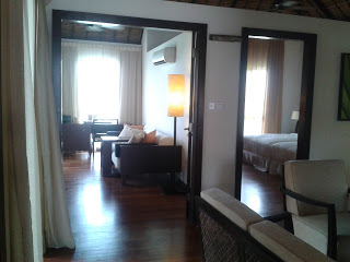 Pada tanggal 17 November 2012 penulis sekeluarga pun bercuti di sini dengan menginap di dua buah bilik jenis Canary Palm Villa yang berkeluasan 883 kaki persegi dengan kadar sewaan RM2,400.00 semalam bagi setiap bilik. Memang berbaloi kerana eksklusif dan bertaraf antarabangsa bilik-bilik yang ada di Sepang Gold Coast ini. Apabila menginap di sini kita akan disajikan dengan pemandangan luar yang mendamaikan perasaan. Laut yang terbentang, sesekali mengocak ketenangan resort yang berdiri tegak di dalam air begitu menyemarakkan ketenangan. Serasa hidup bagai diapung kemewahan yang melimpah.
