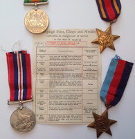 Above are the four medals he received in a small cardboard box. To the left was one of the last photos that was sent to his wife, from near Quetta, before the long journey to Burma, where most of his possessions, equipment and war buddies were lost. On the right George salutes when I took to the War Memorial in Auckland, New Zealand. This was one of the few times I had seen him stand tall and proud.