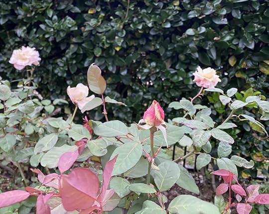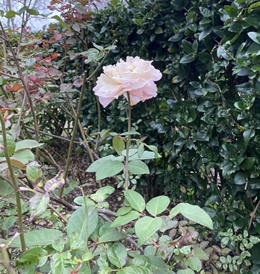 The roses that have survived the garden – not as many as I would have hoped – are still blooming away. This morning I discovered a lovely rose bud at the side of the house. It was a nice surprise.
